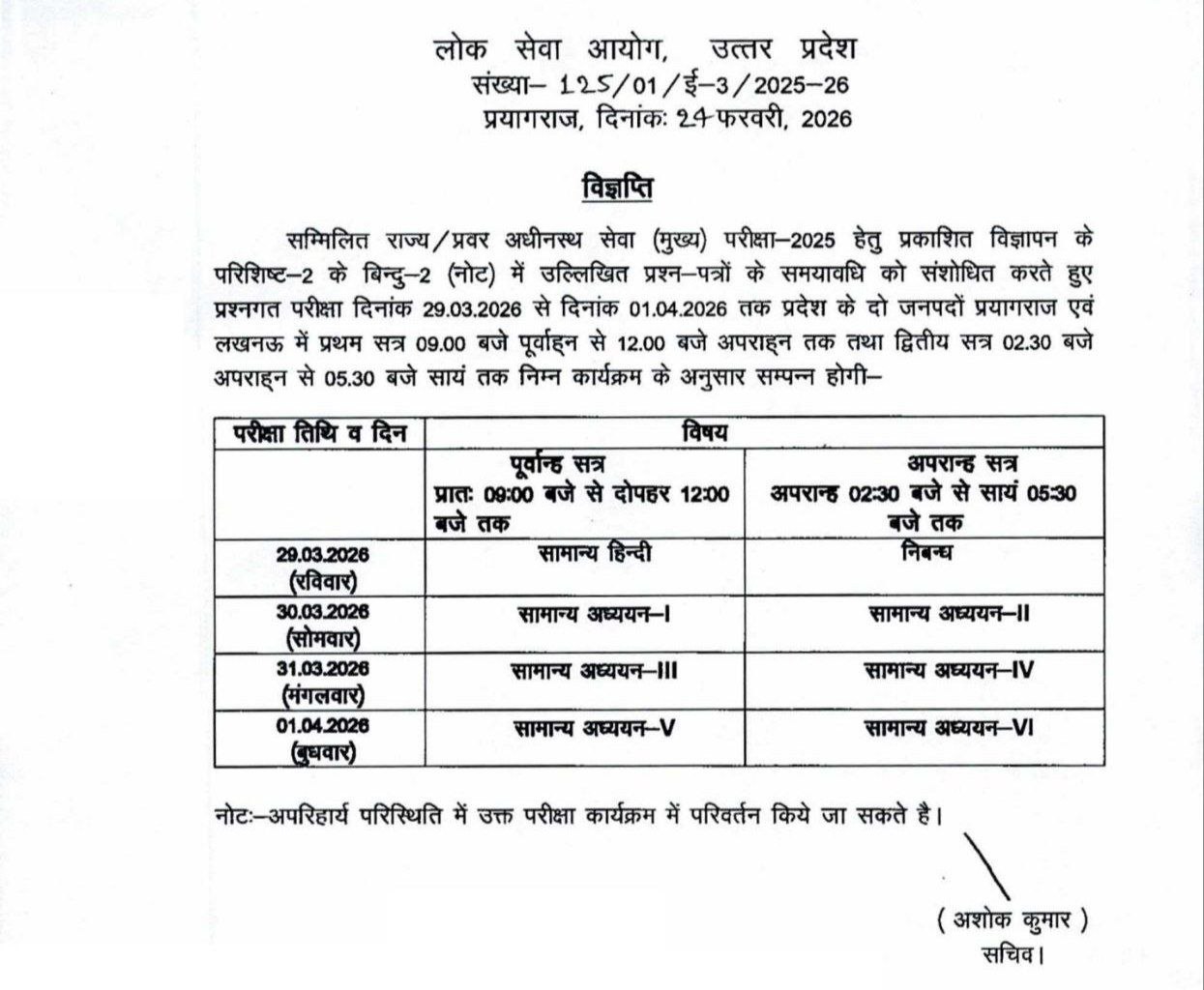 UPPSC PCS Examination 2025 NEW JOB 2026